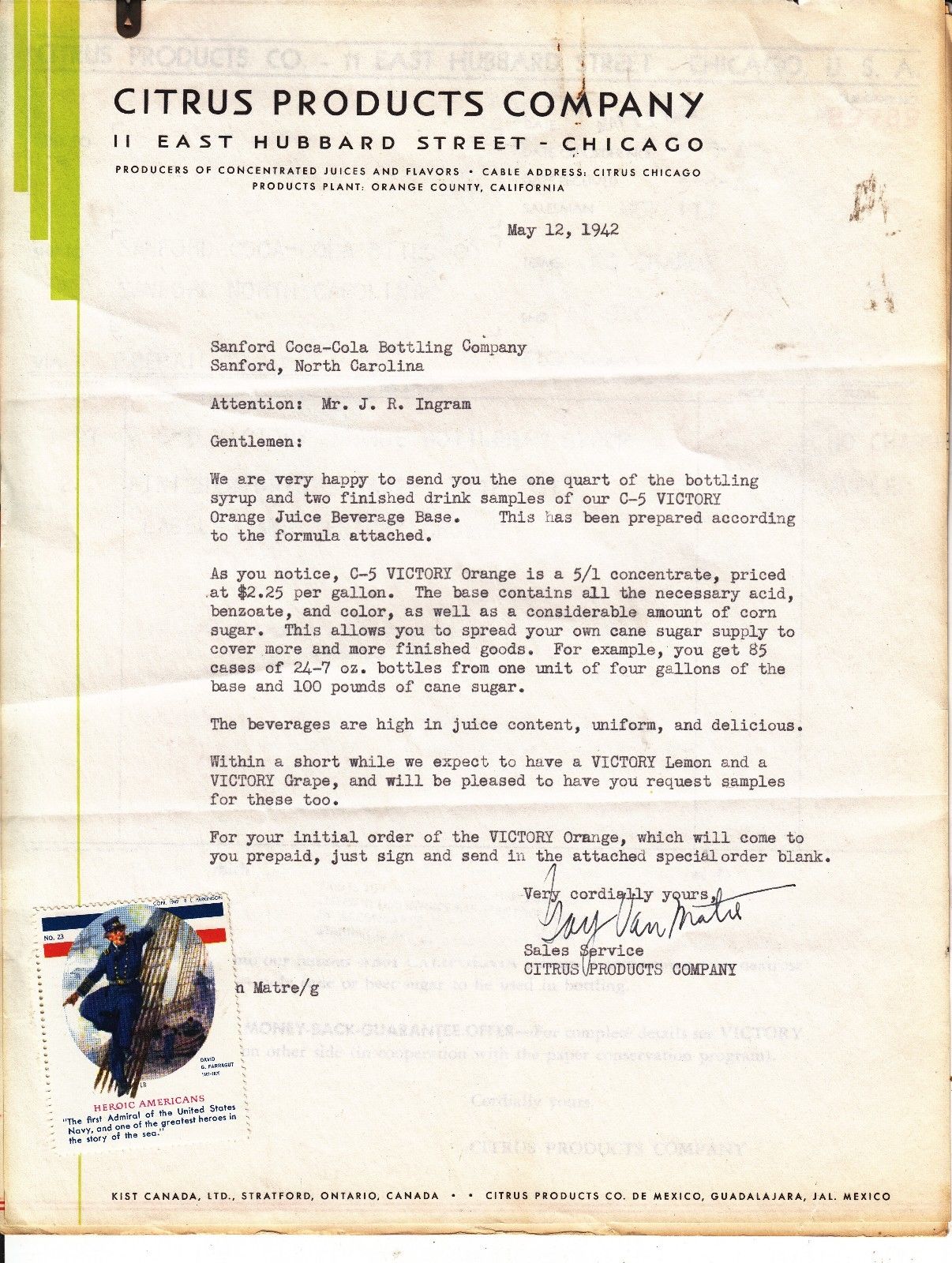 CITRUS PRODUCTS COMPANY LETTERHEAD PRODUCERS OF CONCENTRATED JUICES & FLAVORS
