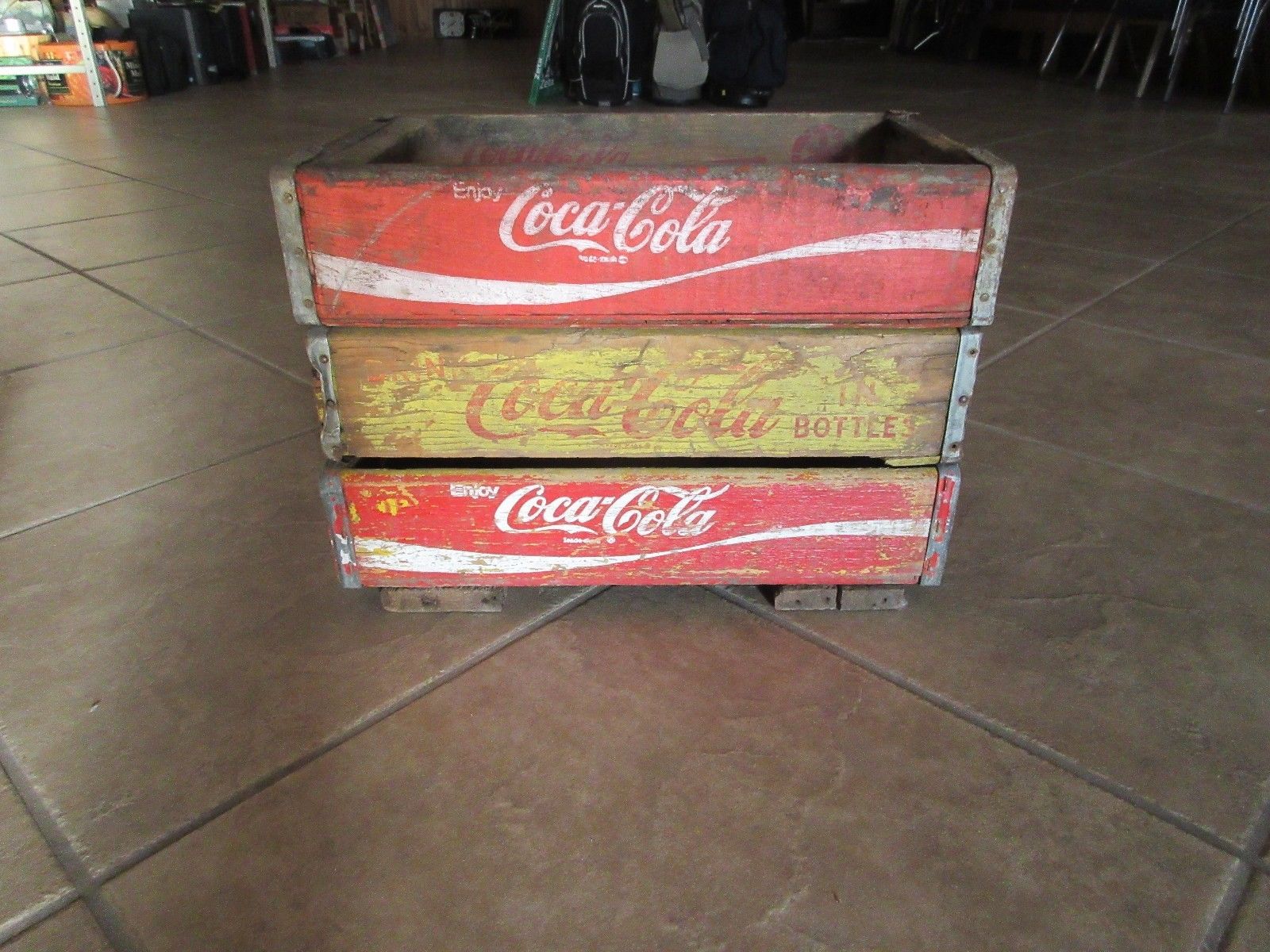 Title (ebay affiliate link): 3 VINTAGE COCA COLA BOTTLE CRATES 2 RED 1 YELLOW