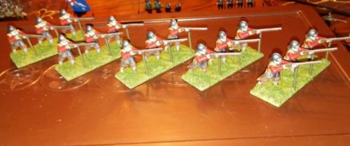 Colonial foot soldiers in red, group of 15