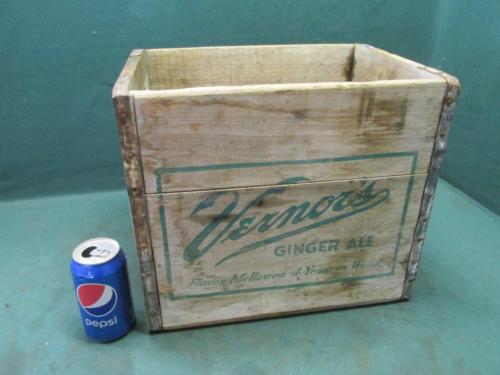 Antique Vintage Vernor''s Ginger Ale Wood Wooden Advertising Soda Pop Crate Box
