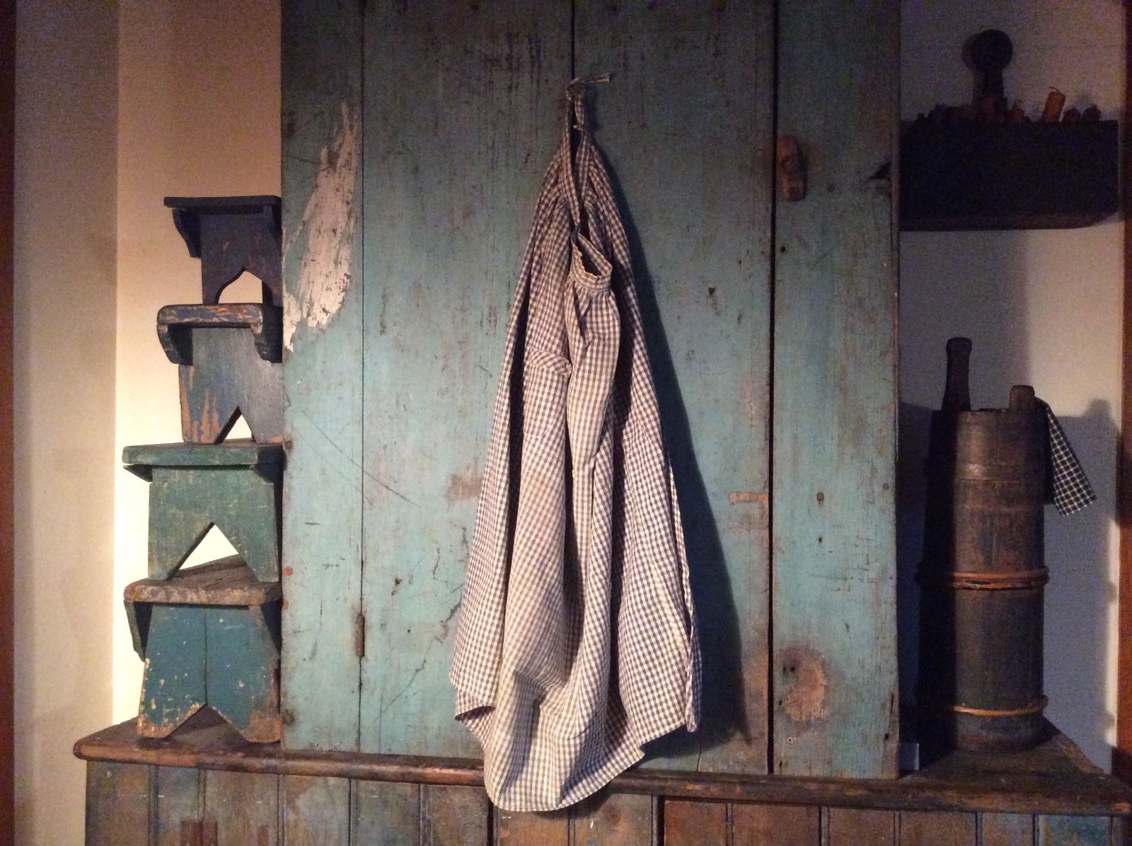 Old primitive blue/white homespun apron