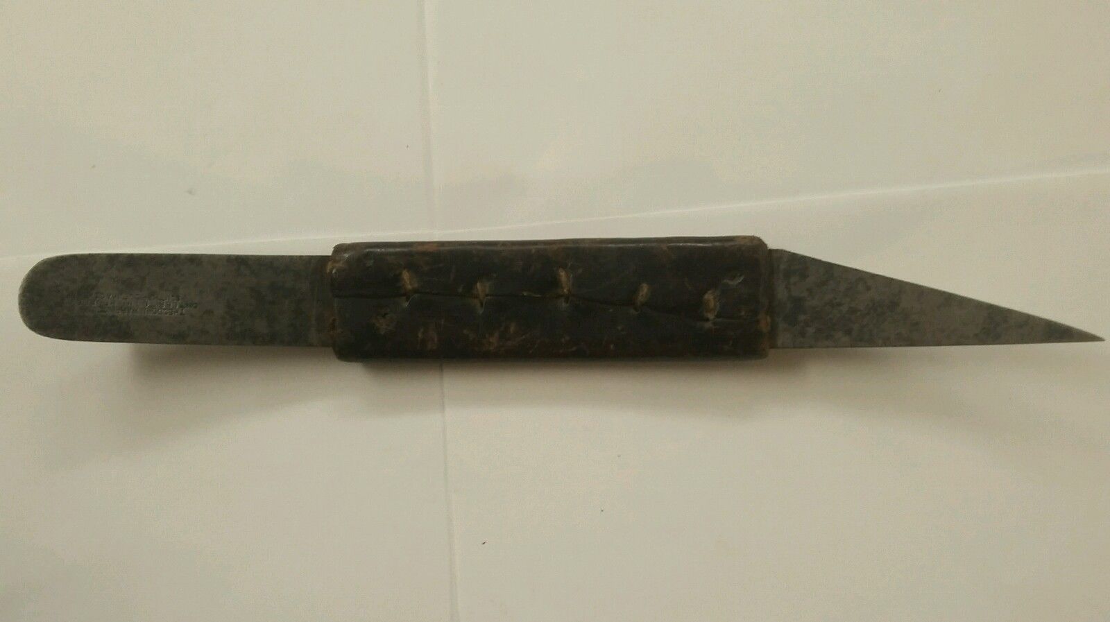 Antique Theodore Harrington Hand Made Leather Wrap Cobbler''s Tool / Knife