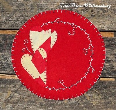 Title (ebay affiliate link): Primitive Bittersweet VALENTINES Cranberry Vintage Quilt Penny Rug ~ Candle Mat