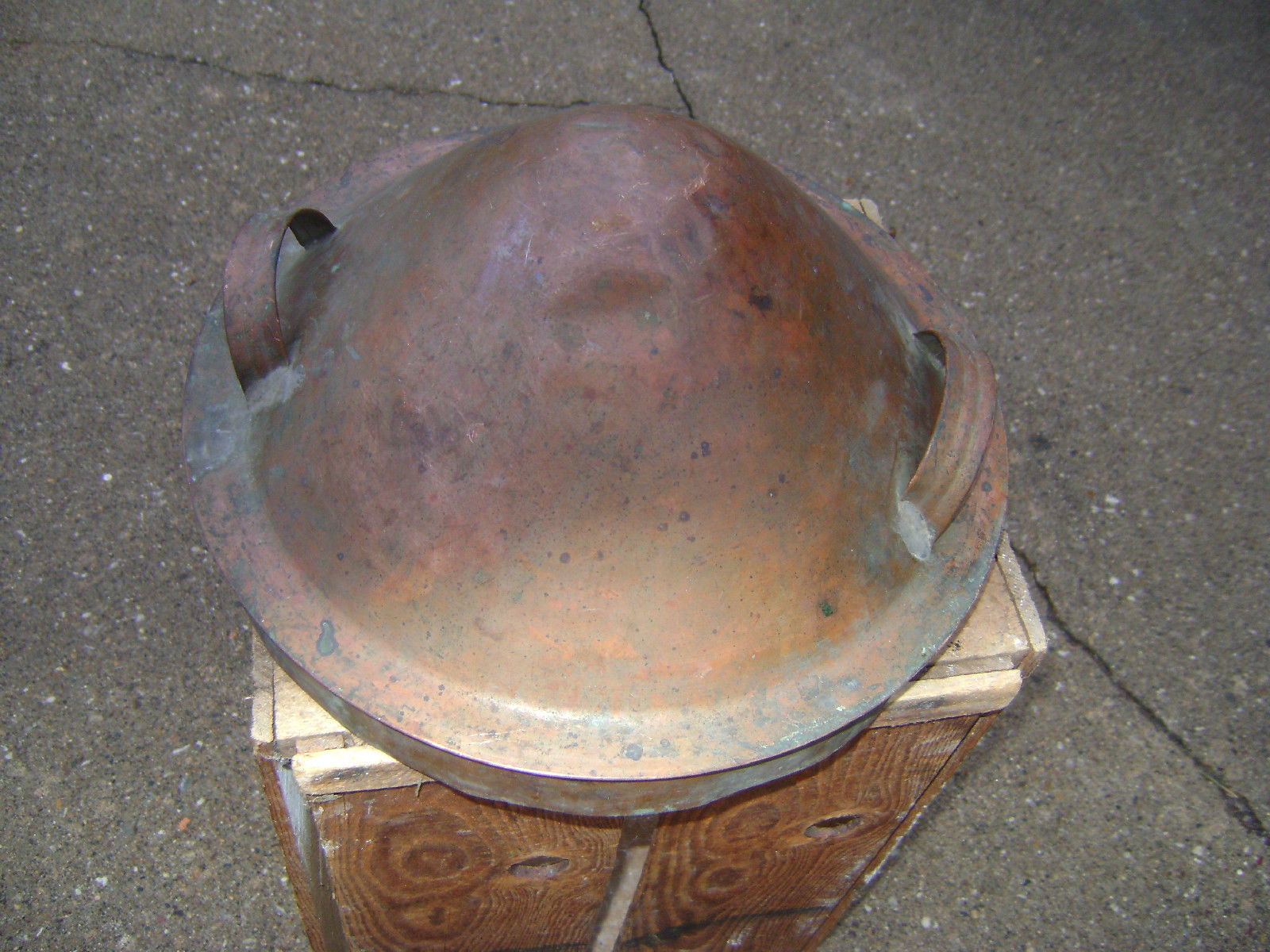 Title (ebay affiliate link): Useful Older Round Copper Boiling Lid with Handles.