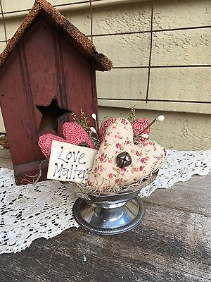 VALENTINE HEART - Primitive Homespun Gathering - Cupboard Sitter - Metal dish