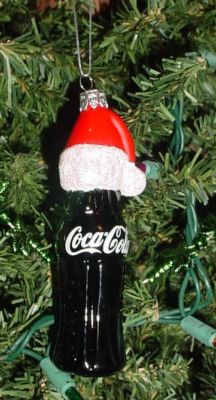 Title (ebay affiliate link): COCA COLA BOTTLE COKE SANTA HAT CHRISTMAS ORNAMENT NIB