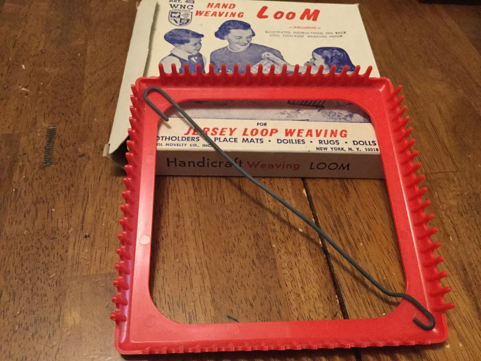 Title (ebay affiliate link): Vintage Potholder Hand Weaving Loom and Steel Hook JERSEY WEAVING LOOP With BOX