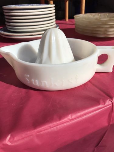 Title (ebay affiliate link): Vintage white milk glass Sunkist citrus fruit juicer with handle