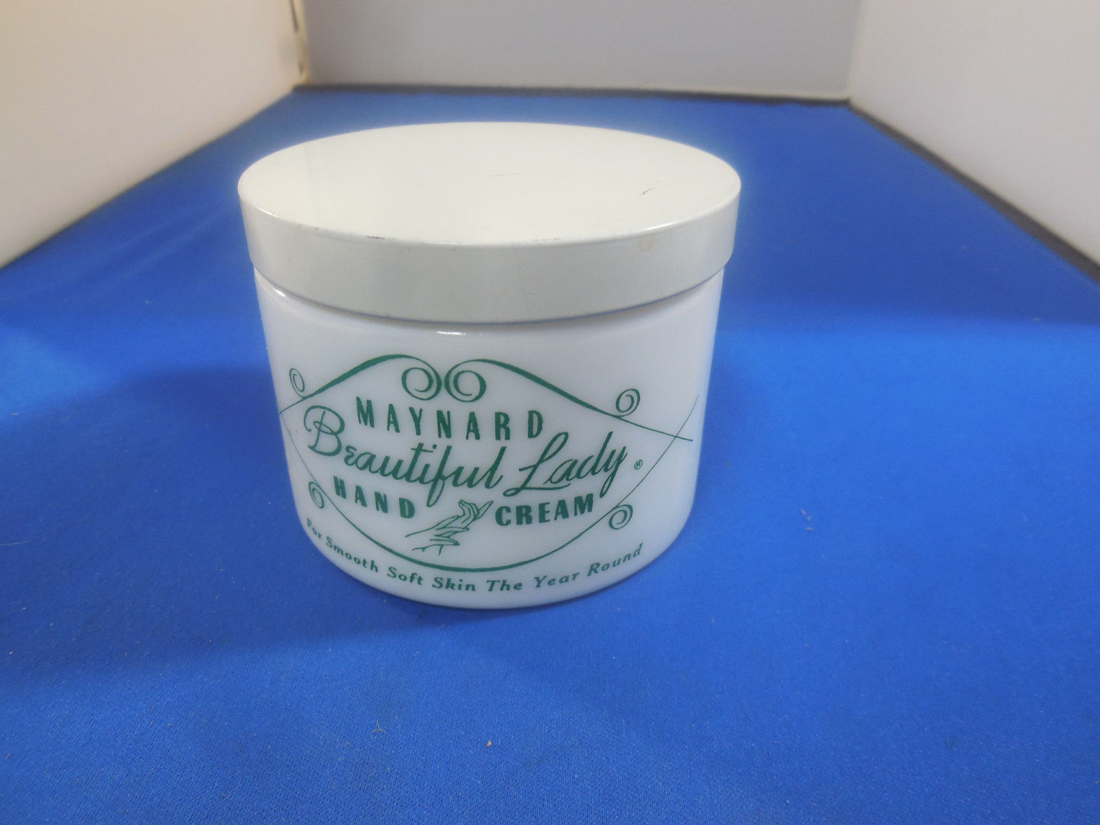 Title (ebay affiliate link): Maynard Beautiful Lady Hand Cream Milk Glass Jar 1940-50''s