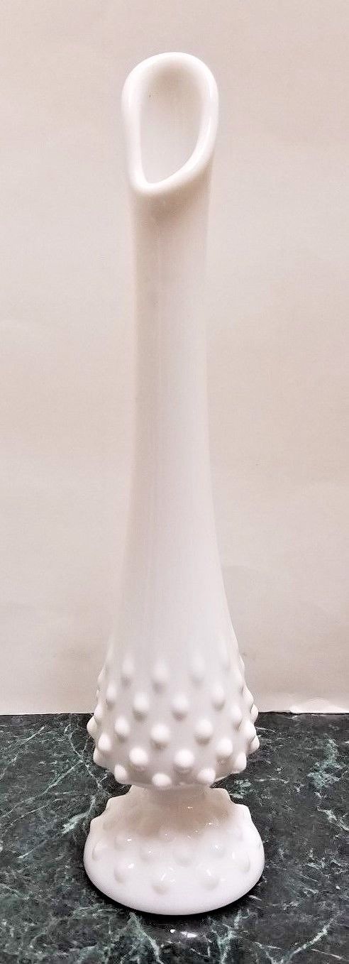 Fenton Glass Company Hobnail Milk Glass Bud Vase , 10", vintage