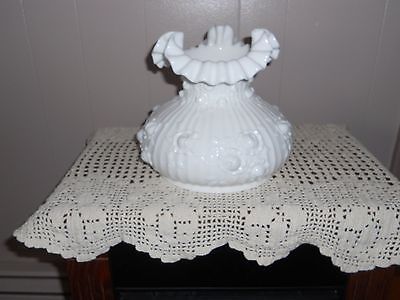 Fenton White Milk Glass Embossed Flower Ruffled Top GWTW Lamp Shade