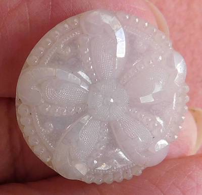 #g)ANTIQUE MILK GLASS BUTTON WITH A 4-WAY METAL SHANK