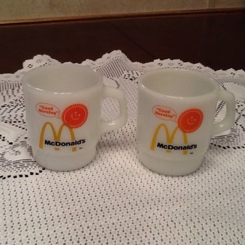 Title (ebay affiliate link): 2 McDonalds Fire King Good Morning Vintage Anchor Hocking Milk Glass Coffee Mugs
