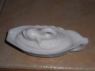 Milk Glass Covered "Dolphin" Pitcher Dish