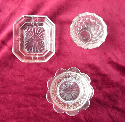 3 Old Depression Glass Pin Dishes