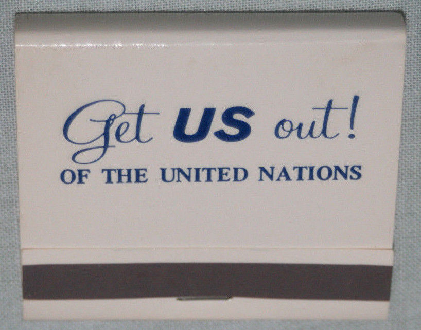 Title (ebay affiliate link): 1959 JOHN BIRCH SOCIETY Get Out Of UN NEO-CON UNSTRUCK MATCH BOOK Matchcover