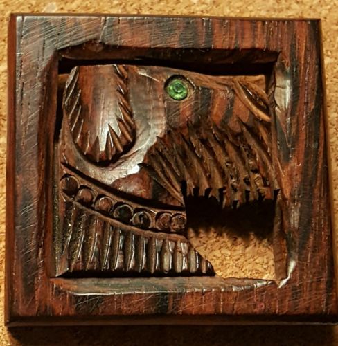 VINTAGE WOODEN PIN AIREDALE HAND CARVED FOLK ART OOAK