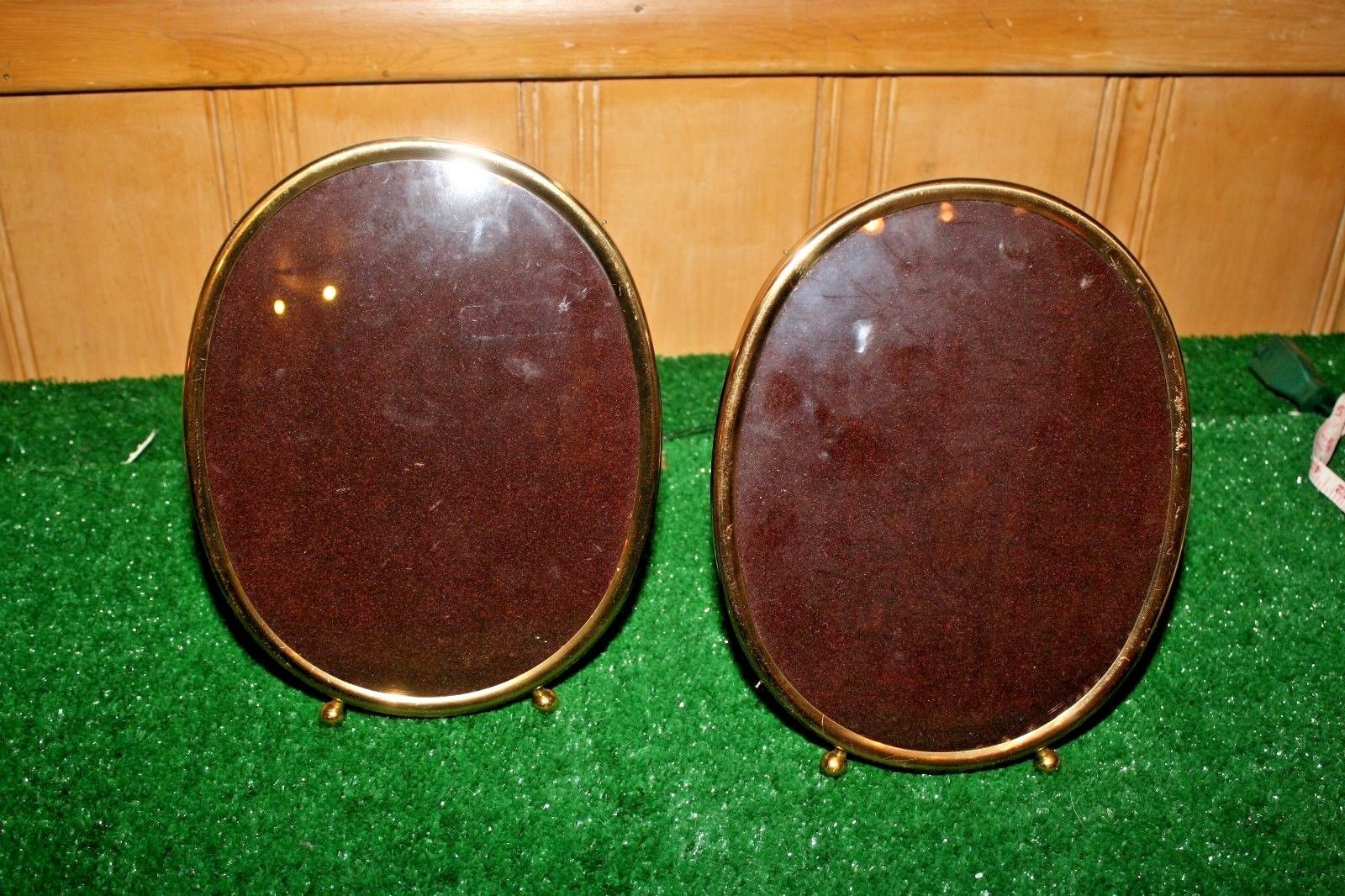 Pair Antique Brass Curved Glass Oval Picture Frames Photograph Frame easel backs