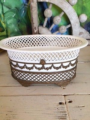 Title (ebay affiliate link): Antique Lattice Reticulated Porcelain Basket Planter Ornate Garland Swags Ormolu