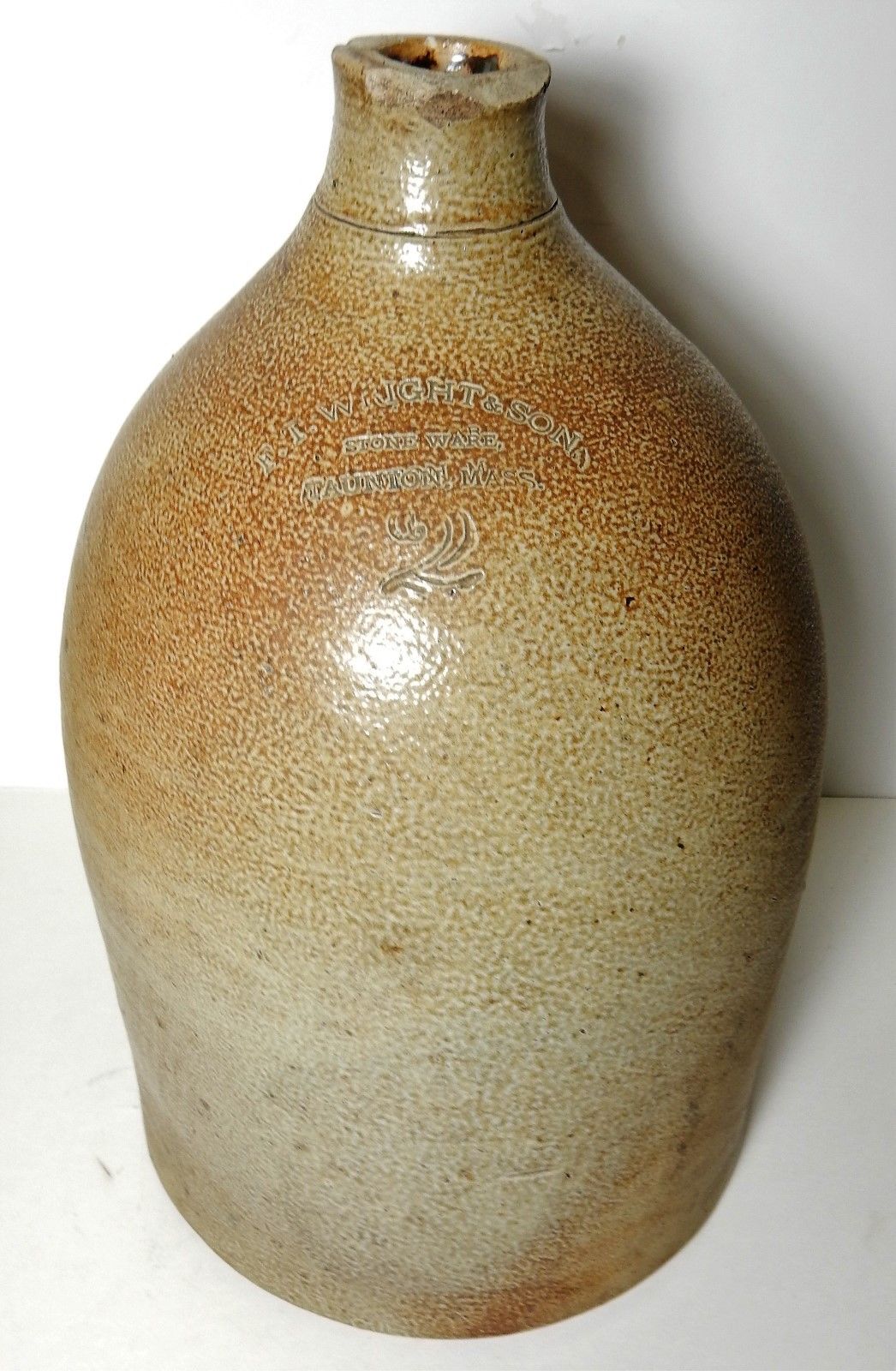 Title (ebay affiliate link): 1800''s F.T. WRIGHT & SON STONEWARE TAUNTON MASS 2 GALLON SALT GLAZE JUG