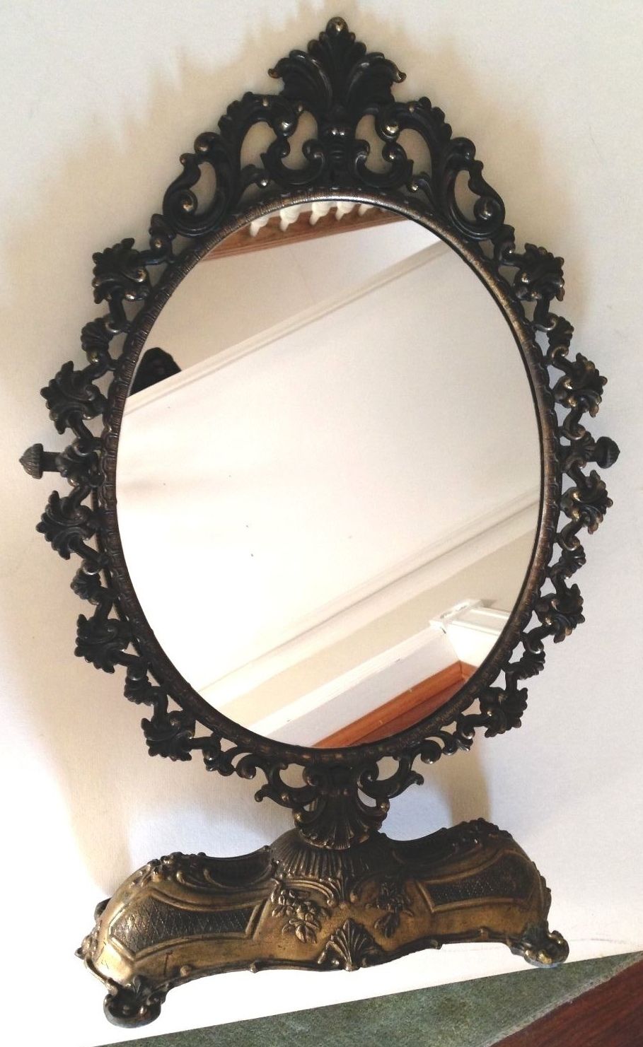 Vintage Swivel Vanity Solid Brass Oval Mirror Large ITALY