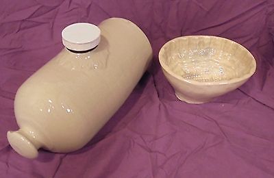 Antique Stoneware Hot Water Bottle and Antique Stoneware Food Mold, Good Cond.