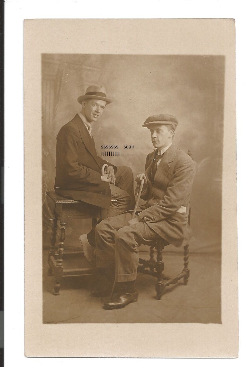 Title (ebay affiliate link): 1910''s Male Fashion 2 gentleman posed seated on antique furniture walking stick