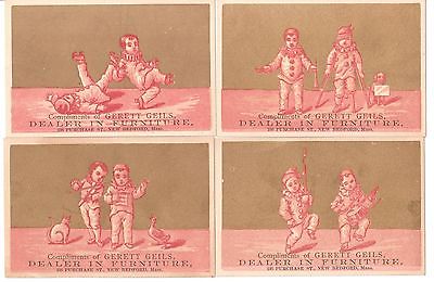 LOT: 4 ANTIQUE TRADE CARDS FURNITURE NEW BEDFORD, MASS. MUSICAL BOY PIERROTS