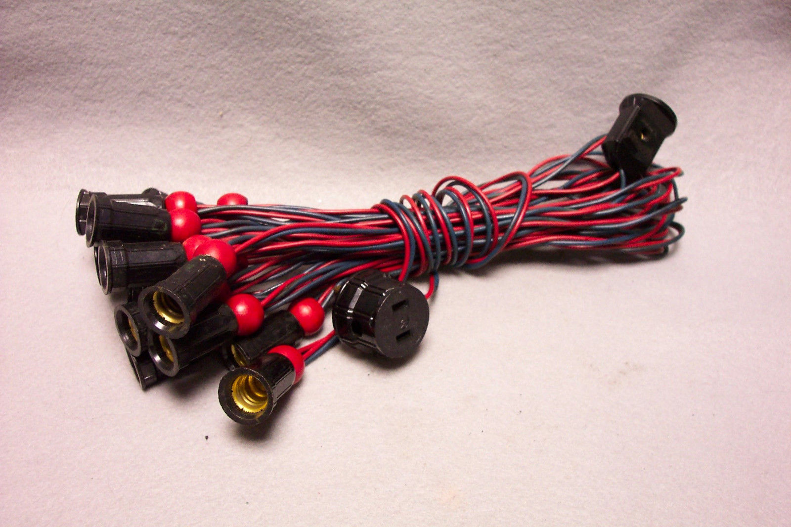 Title (ebay affiliate link): Vintage CHRISTMAS TREE LIGHT STRING C7 with 15 sockets - NOMA - RED WOOD BEADS
