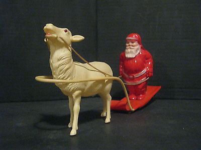 ANTIQUE - CELLULOID - SANTA & REINDEER - IRWIN