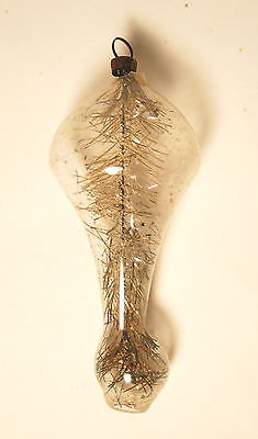 Vintage glass Christmas ornament tinsel inside Germany teardrop