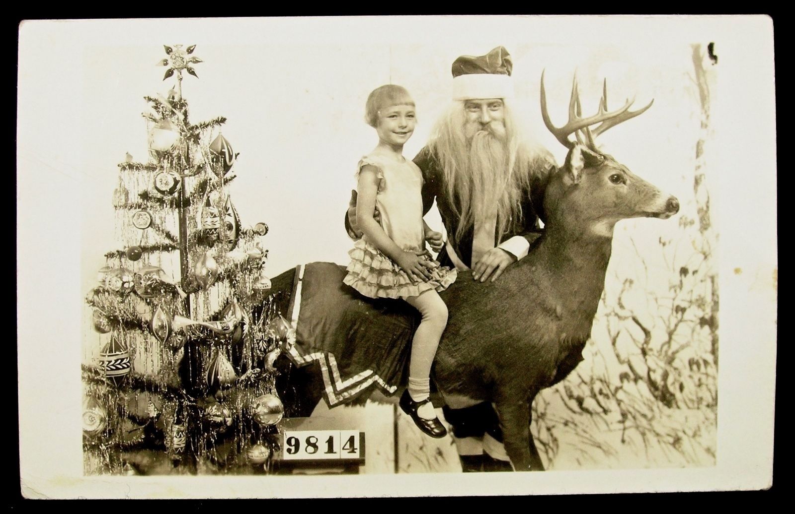 Title (ebay affiliate link): 1920''s RPPC Girl on Taxidermy Deer w/ Santa Real Photo Postcard Christmas