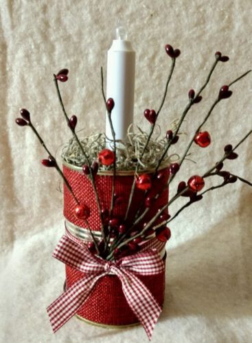 Title (ebay affiliate link): Country Rustic Burlap covered Tin Can LED Candle holder Red & White