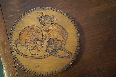 Title (ebay affiliate link): Antique Folk Art Cheese Box Lid Pyrography Cat And Mouse
