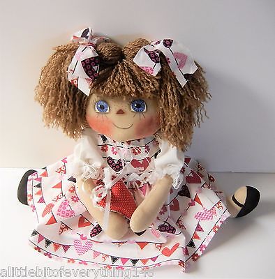 Title (ebay affiliate link): Primitive Raggedy Ann Doll "JESSICA" VALENTINE DOLL HEARTS & FLOWERS HEART ORNIE