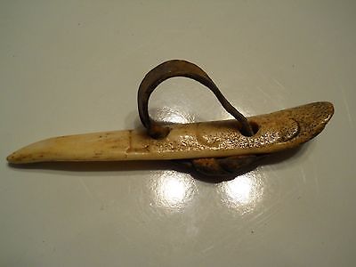 Antique Bone Corn Shucker with engraved letters & Leather Strap