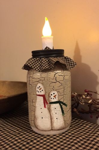 Title (ebay affiliate link): PRIMITIVE CRACKLE JAR NO WOOD CANDLE SNOWMAN COUNTRY FARMHOUSE DECOR WINTER STAR