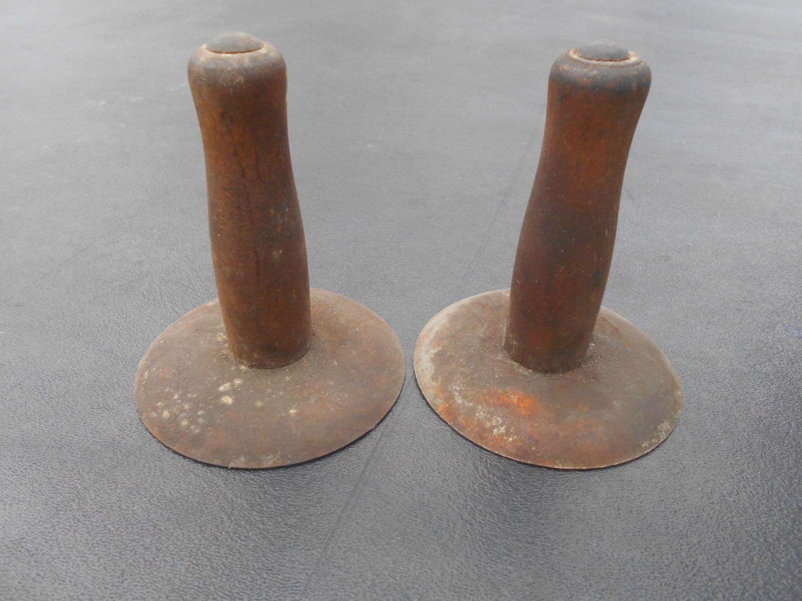 Title (ebay affiliate link): 2 Vintage Hog Scraper Wood Handle Metal Base Butchering Tools