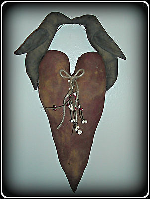 Title (ebay affiliate link): Primitive Valentine!! HEart with Kissing Crows Door Hanger!!