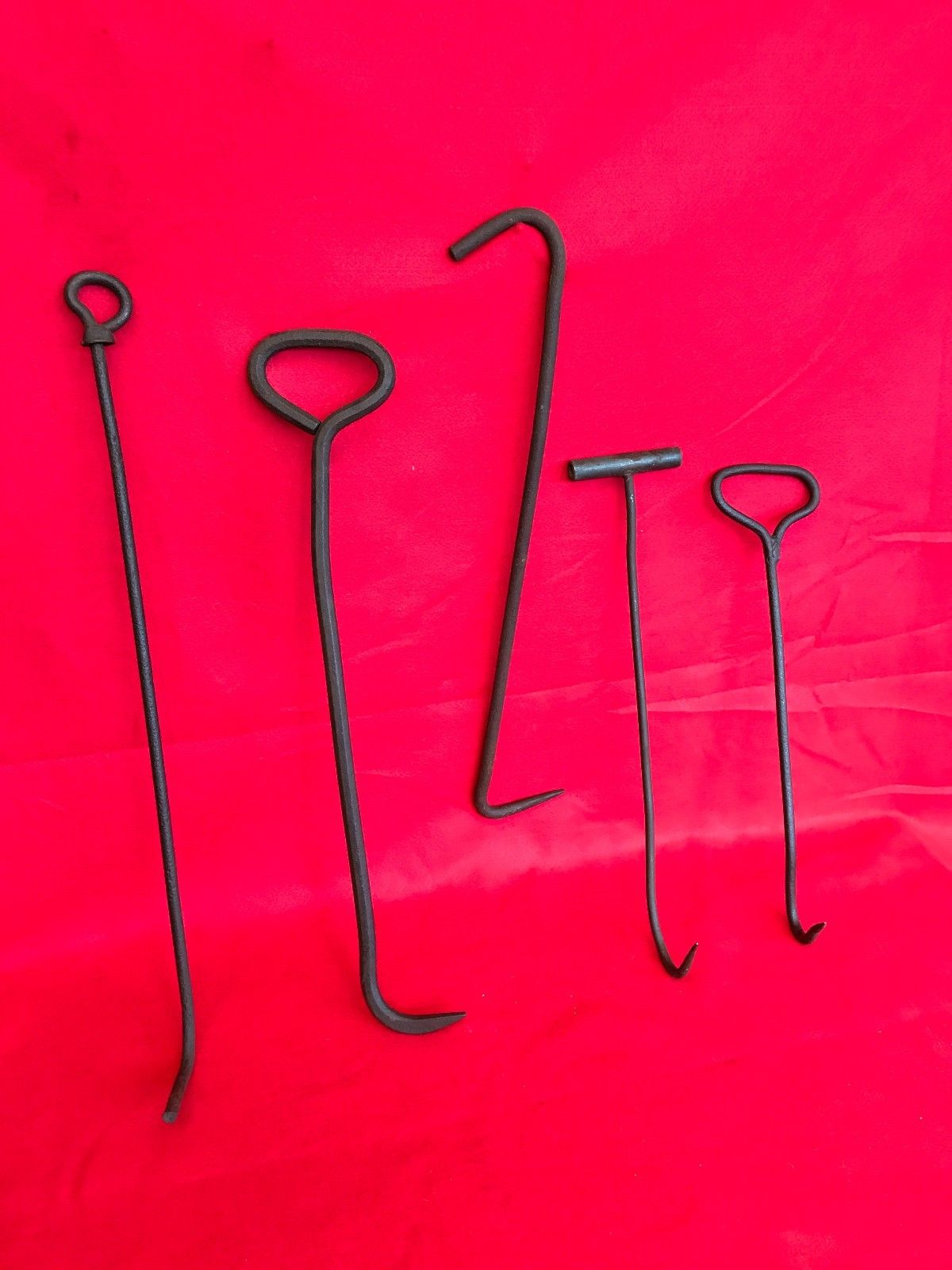 5 Antique Iron Fireplace Log Hooks ~ Vintage Rustic Cabin Decor Wall Hooks 6393