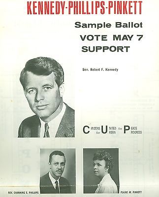 Vintage 1968 Senator Robert Kennedy Phillips Pinkett DC Political Sample Ballot
