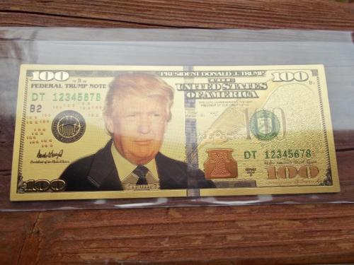 Title (ebay affiliate link): 1 DONALD TRUMP 24K GOLD FOIL $100 BANK NOTE BILL! PRESIDENT TRUMP NOTE USA