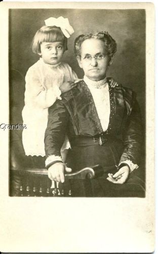 Title (ebay affiliate link): RPPC PRECIOUS LIL GIRL w HAIR BOWS & GRANDMA w GLASSES ANTIUQUE PHOTO POSTCARD