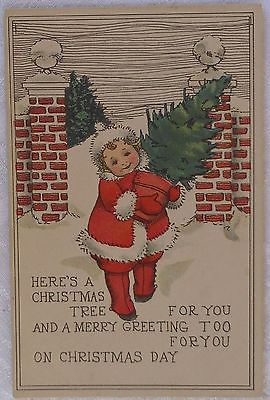 Title (ebay affiliate link): Cute Li''l Girl as SANTA Carrying CHRISTMAS TREE Gibson Art Art Deco Era CQ4