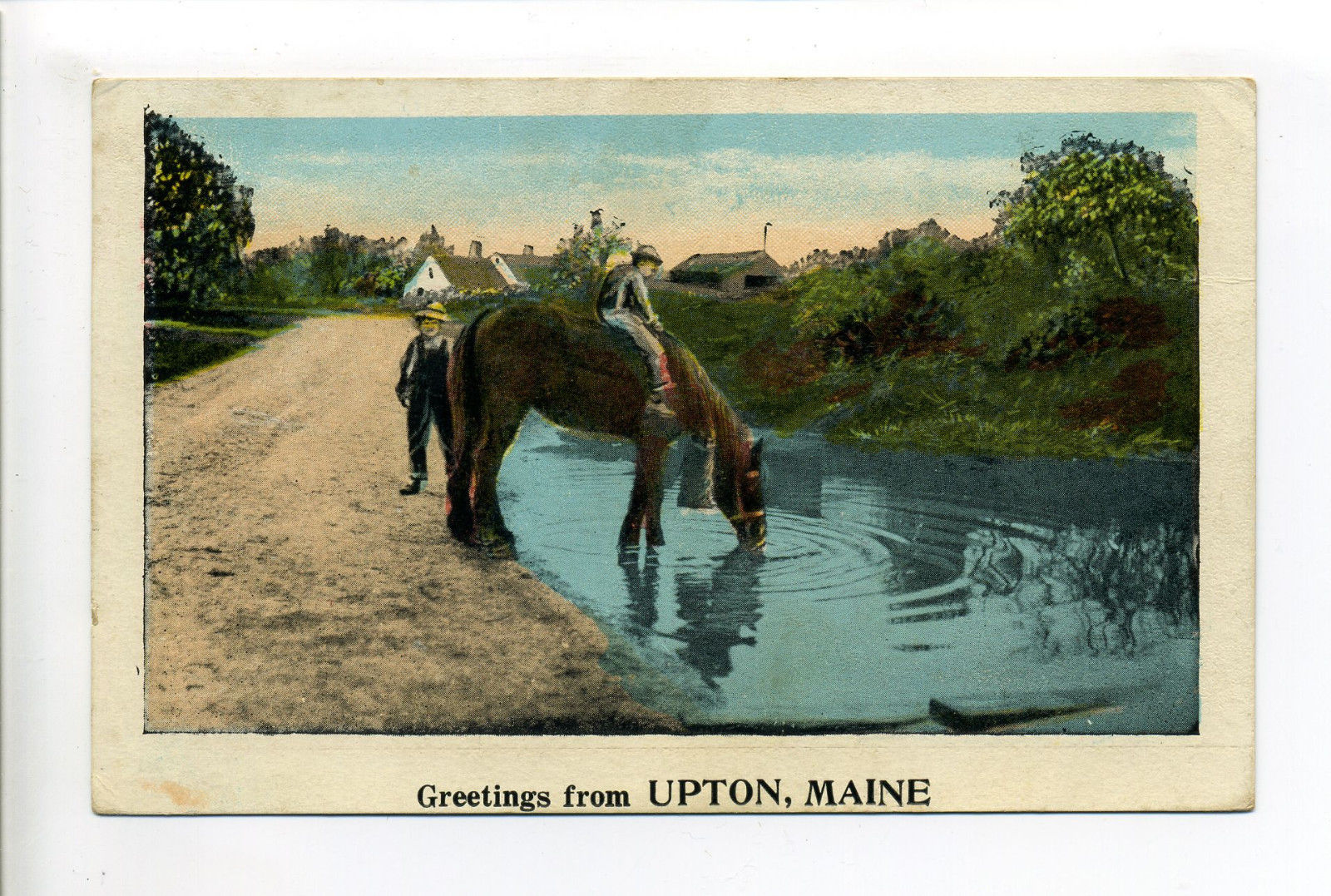 Title (ebay affiliate link): Upton ME Maine horse drinking from pool, farmers, 1924