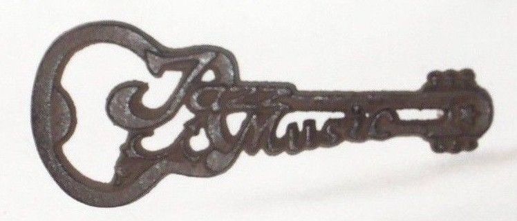 Title (ebay affiliate link): Cast Iron GUITAR SHAPED JAZZ MUSIC Beer Bottle Opener Warm Rustic Finish 5.25"