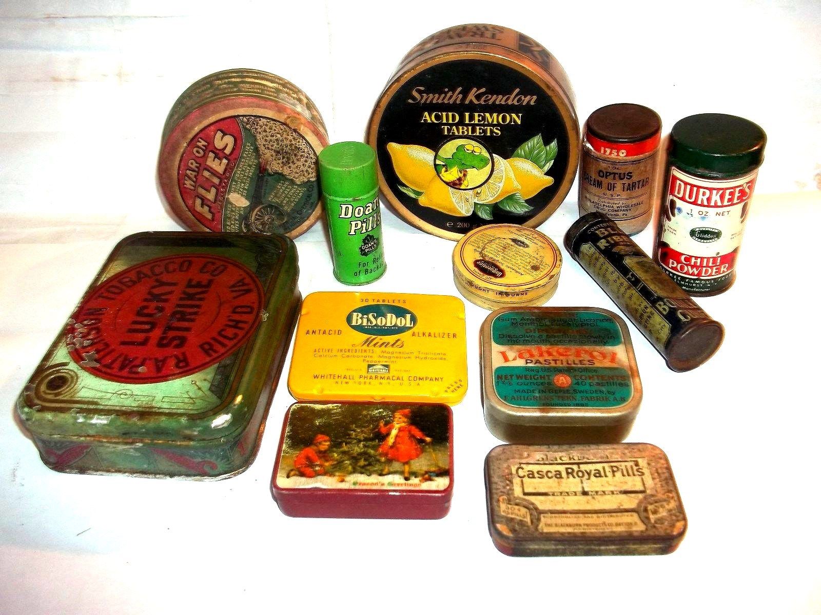 Title (ebay affiliate link): grandpa left 12 tins vintage Doan''s Durkee''s BiSoDol Lucky Strike more (lot C)