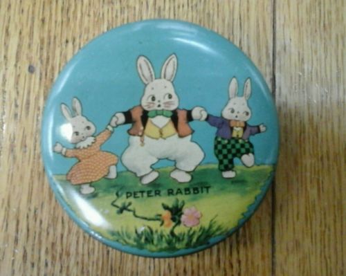 Title (ebay affiliate link): Vintage TINDECO Peter Rabbit Tin Litho Round Lidded Candy Tin 4" x 2" Easter