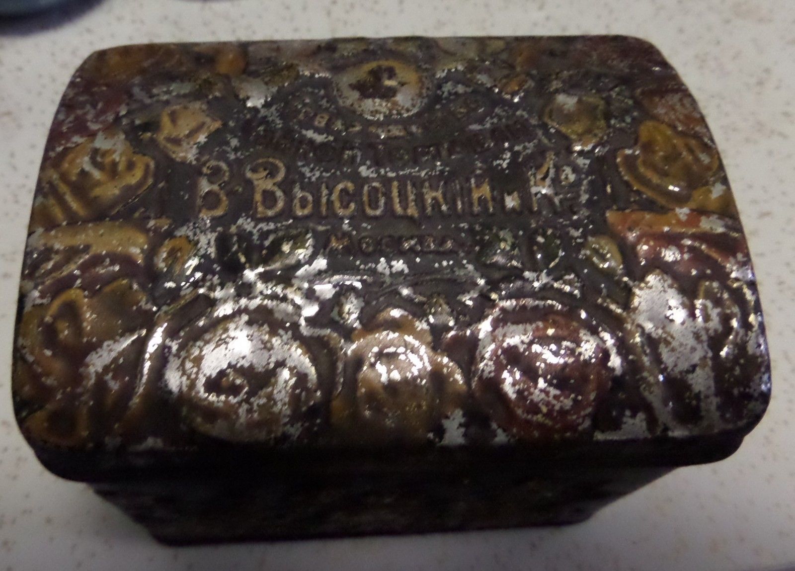 Title (ebay affiliate link): Russian Moscow Embossed Pre Revolution Tea Caddy Tin Box