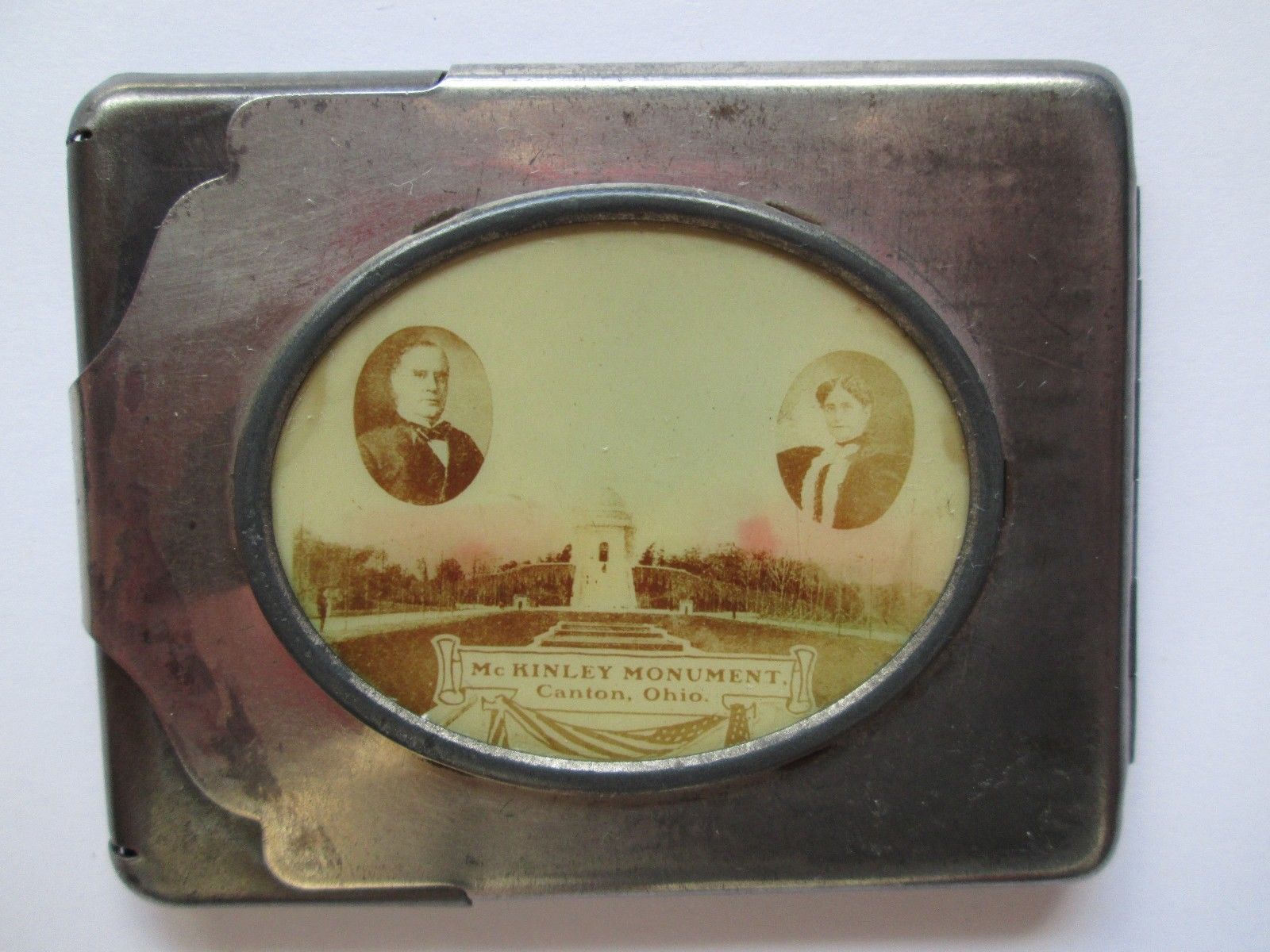 Title (ebay affiliate link): WM.McKINLEY & WIFE MONUMENT CELLULOID & METAL MATCH SAFE - NICE,CANTON OHIO